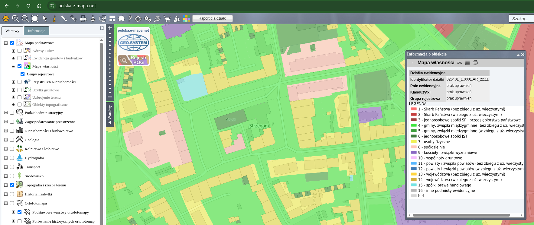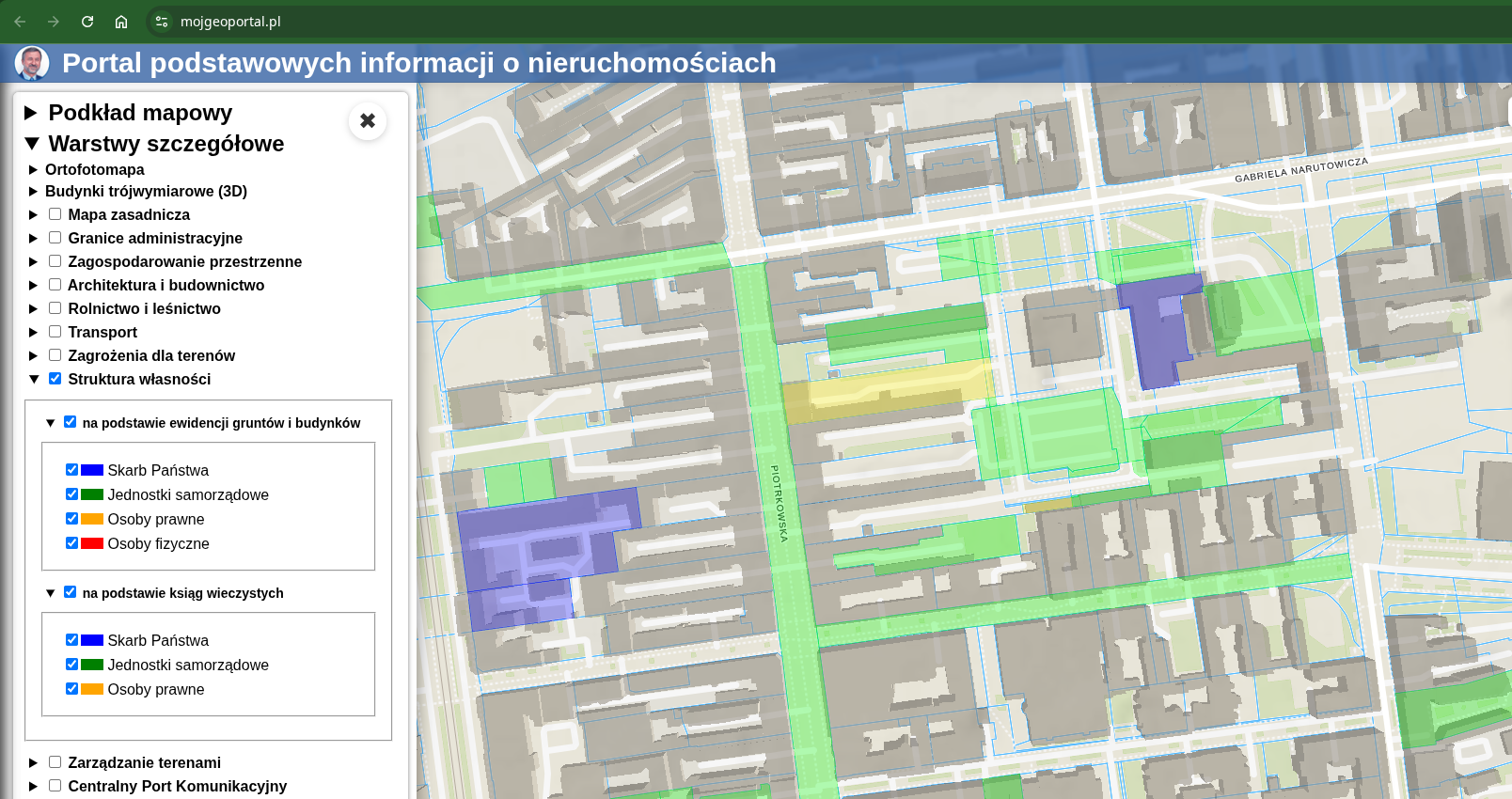 Na stronie https://mojgeoportal.pl/ po wybraniu warstw 'Struktura własności'